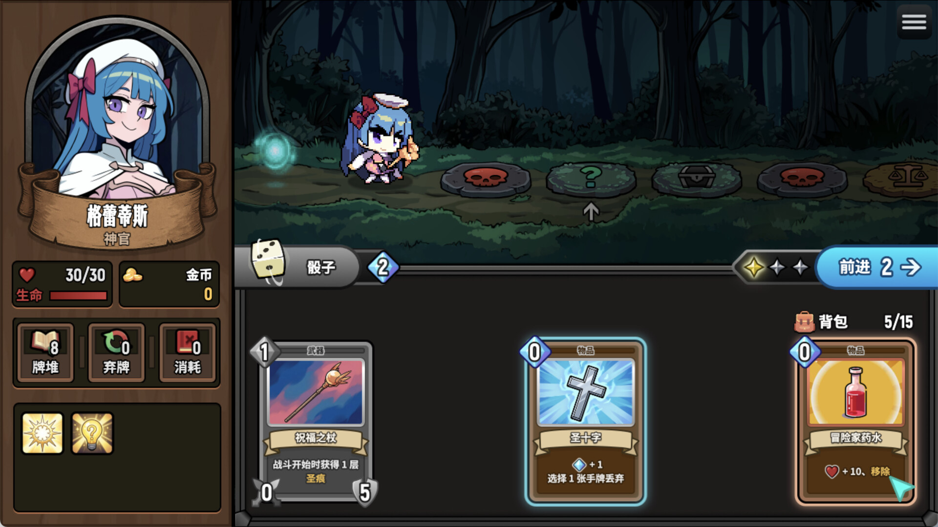 • 🎒 手牌与背包的博弈:手牌空间寸土寸金。物品牌与装备牌不会加入卡组循环,战斗中灵活利用背包和装备区域的卡牌,能让你轻松击败强大的敌人。