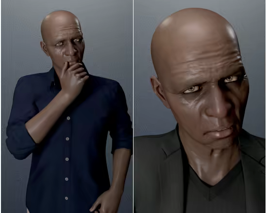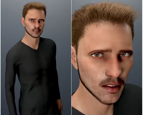 All characters are 3D characters, there are no real people featured anywhere in the game.