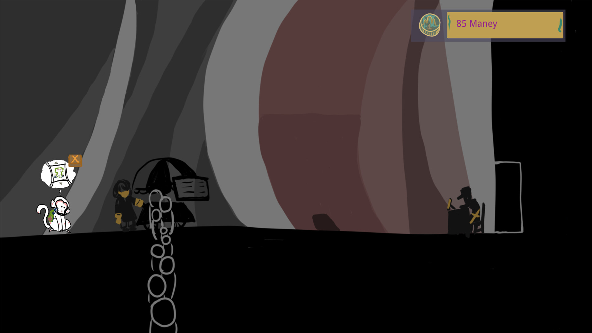The game is a 2D horizontal board choice oriented style game, the player controls a monkey, under the miracle to obtain a special ability, each choice the player makes will affect the direction of the game and the end.