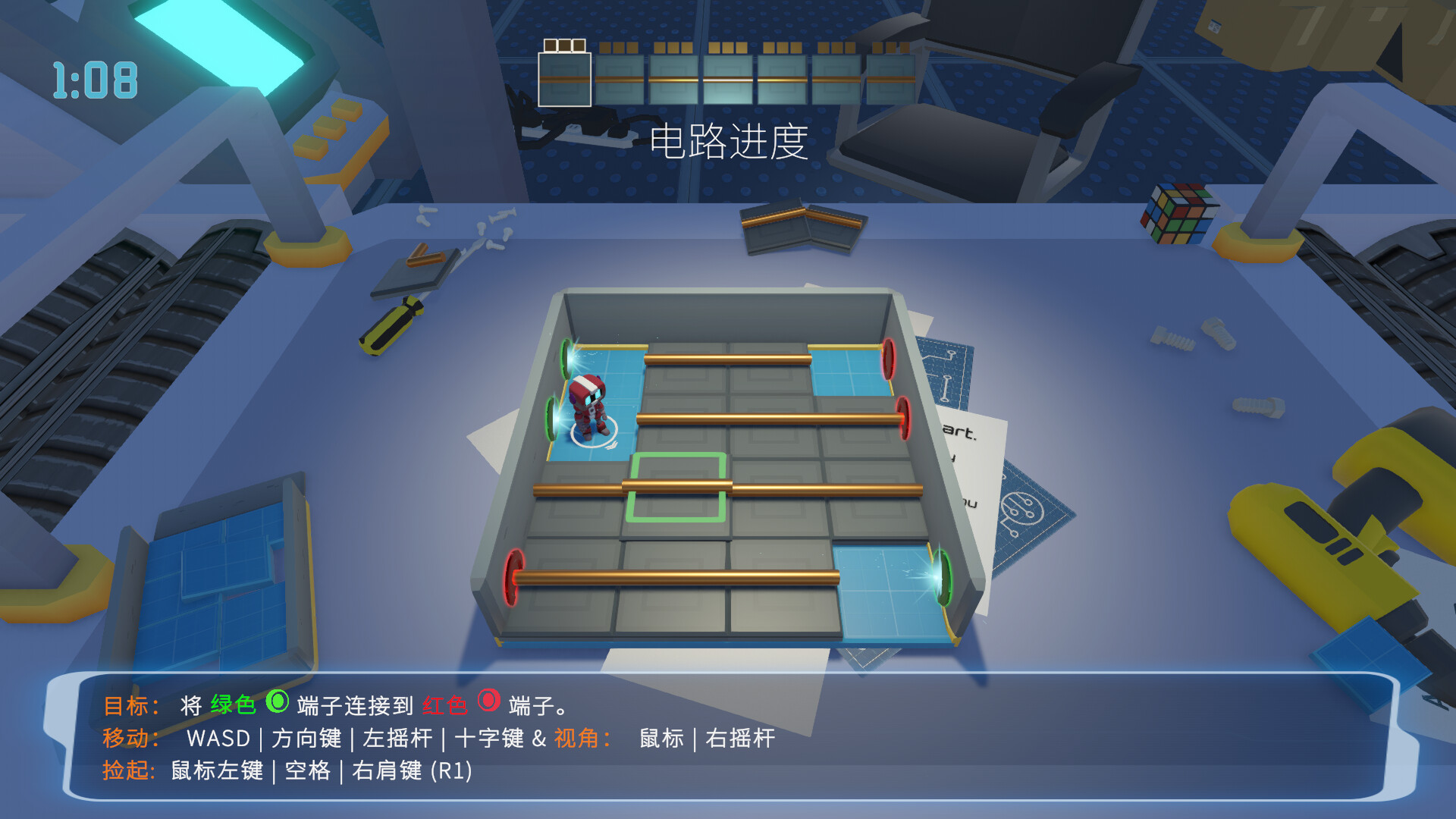 Tiny Circuits 中,你将扮演一名微型机器人,在电子工厂中解决基于网格的电路谜题。