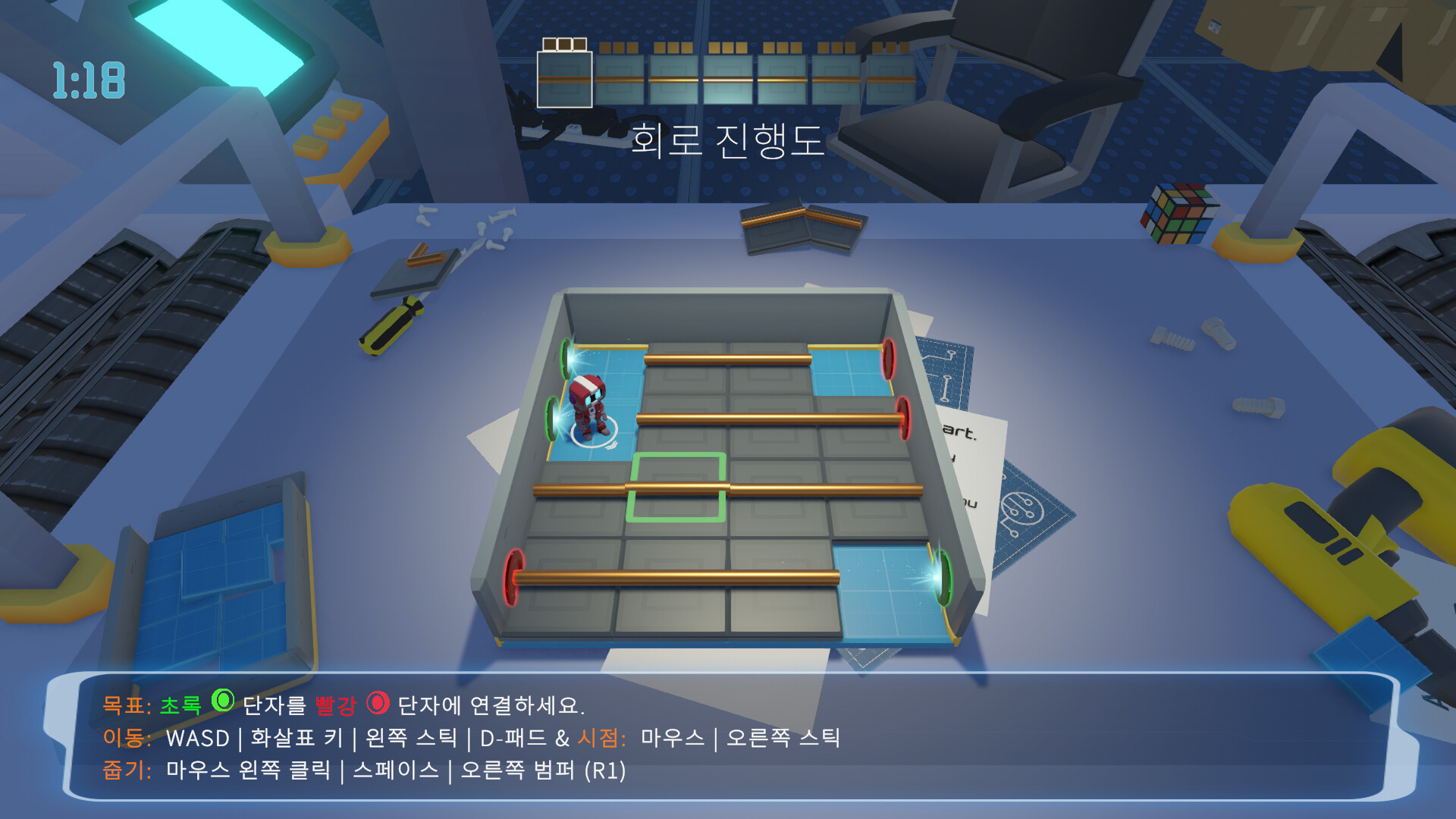소코반, 슬라이딩 퍼즐, 그리고 파이프형 회로 퍼즐이 어우러진 퍼즐 장르의 조합 — 경쾌한 조작감과 함께 즐기는 아기자기하고 다채로운 미니 테크의 세계로 떠나보세요. 회로를 연결하고 회전시켜 완성하세요! 아기자기하고 다채로운 퍼즐 어드벤처가 기다리고 있습니다!