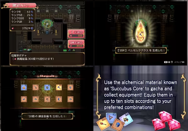 "Succubus Crystals" obtained from battles with infected serve as materials to create special equipment called "Alchemy Equipment" at the Alchemy Research Institute.