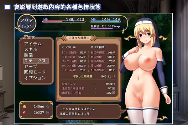 遊戲中的性經驗和狀態不僅僅是數字,它們還會影響戰鬥後和服侍活動後的獎勵。