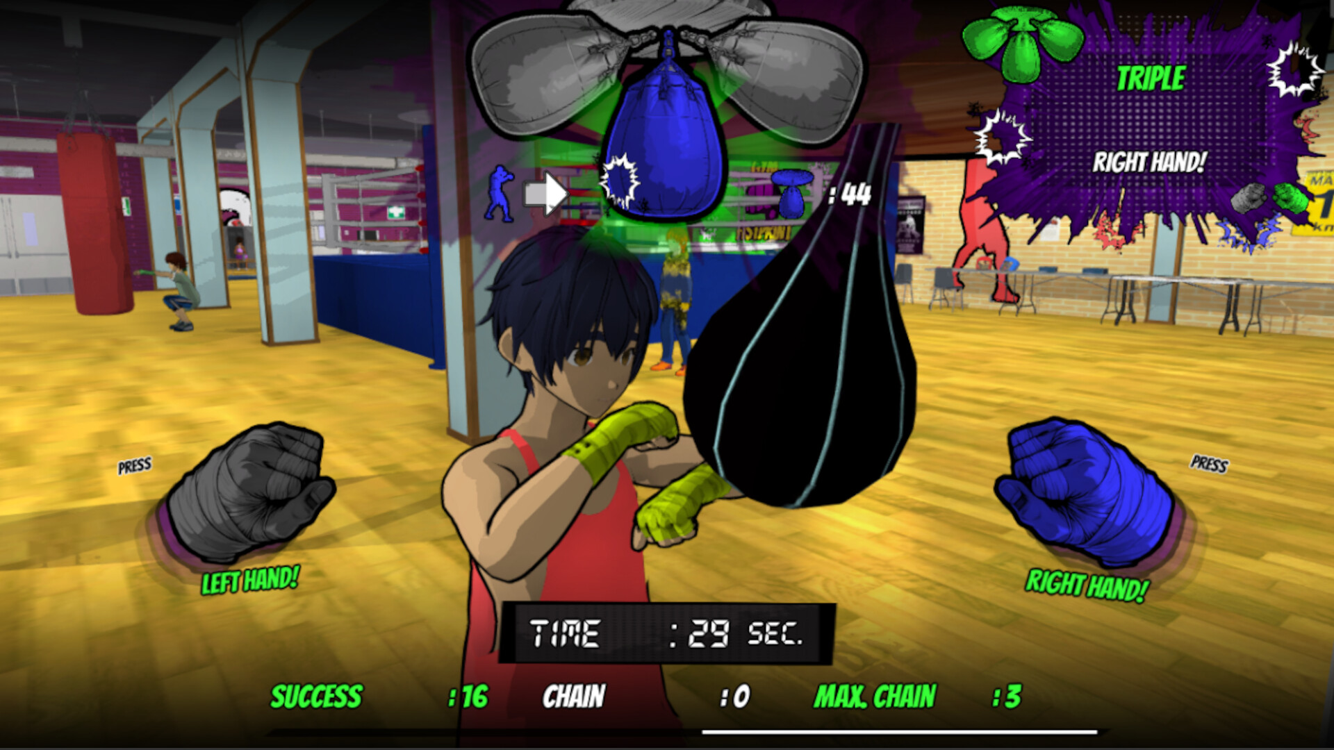 - Train with the "boxing ball" to improve your "dodge hits".