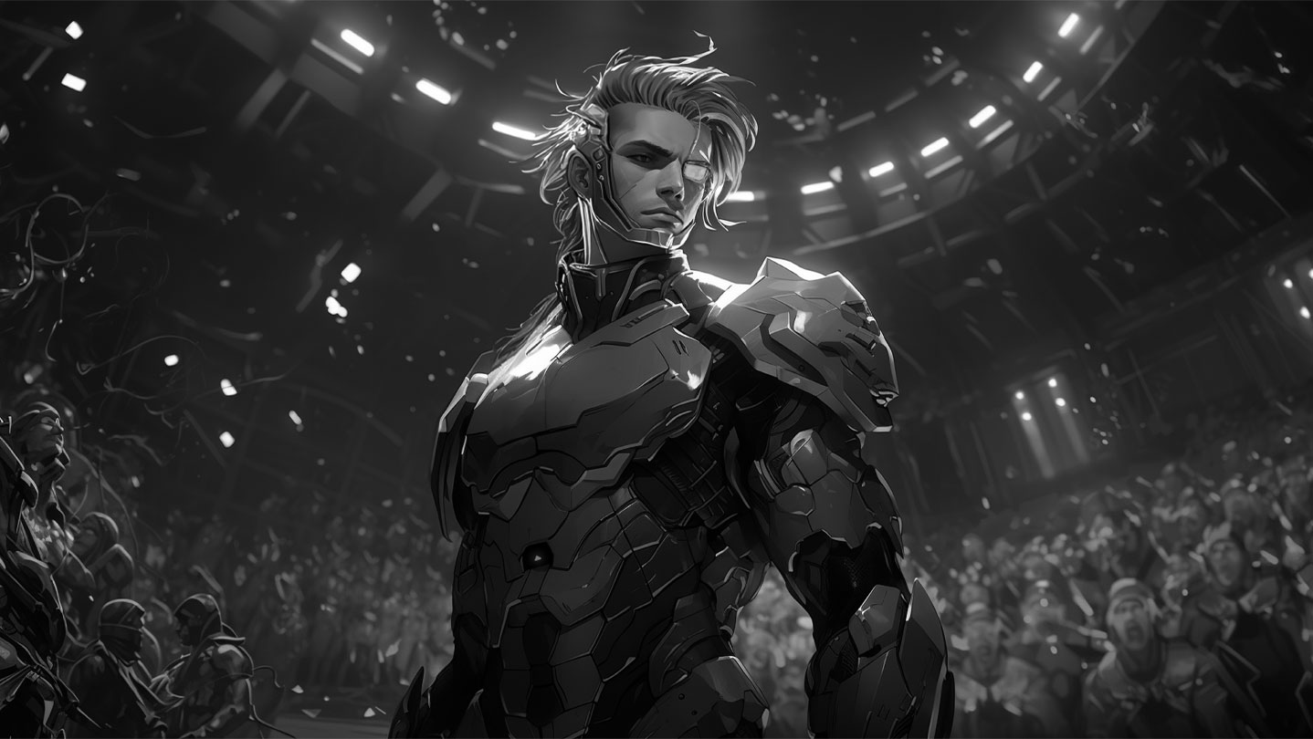 An ancient entertainment in a futuristic universe, at least for the audiance. Our main character is a retired soldier who forced to fight in a gladiator arena. Escape, find the responsibles, punish!