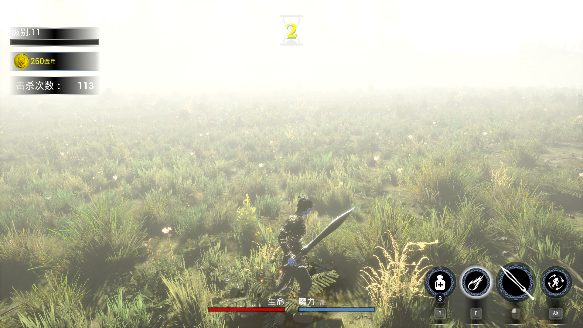 2.击败怪物并升级