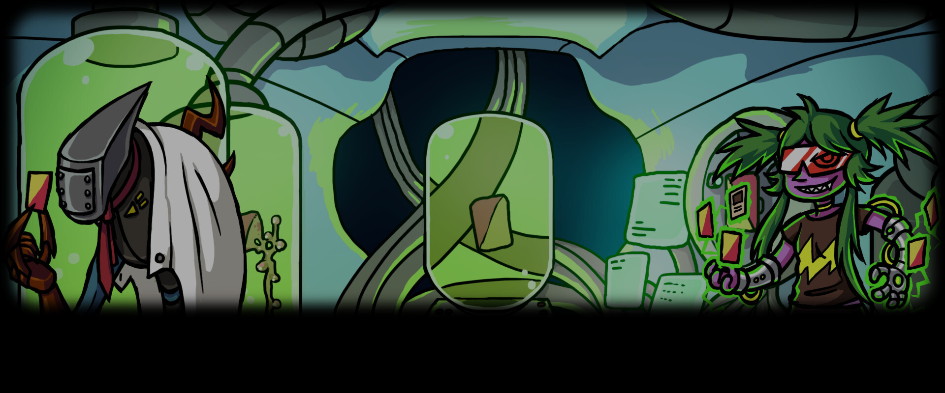 CCN is not a traditional card-trading game. It's an adventure game with zany characters to meet and weird locations to explore. In the center is our new card battle system that breaks away from the fantasy TCG mold with connecting cards to form combos.