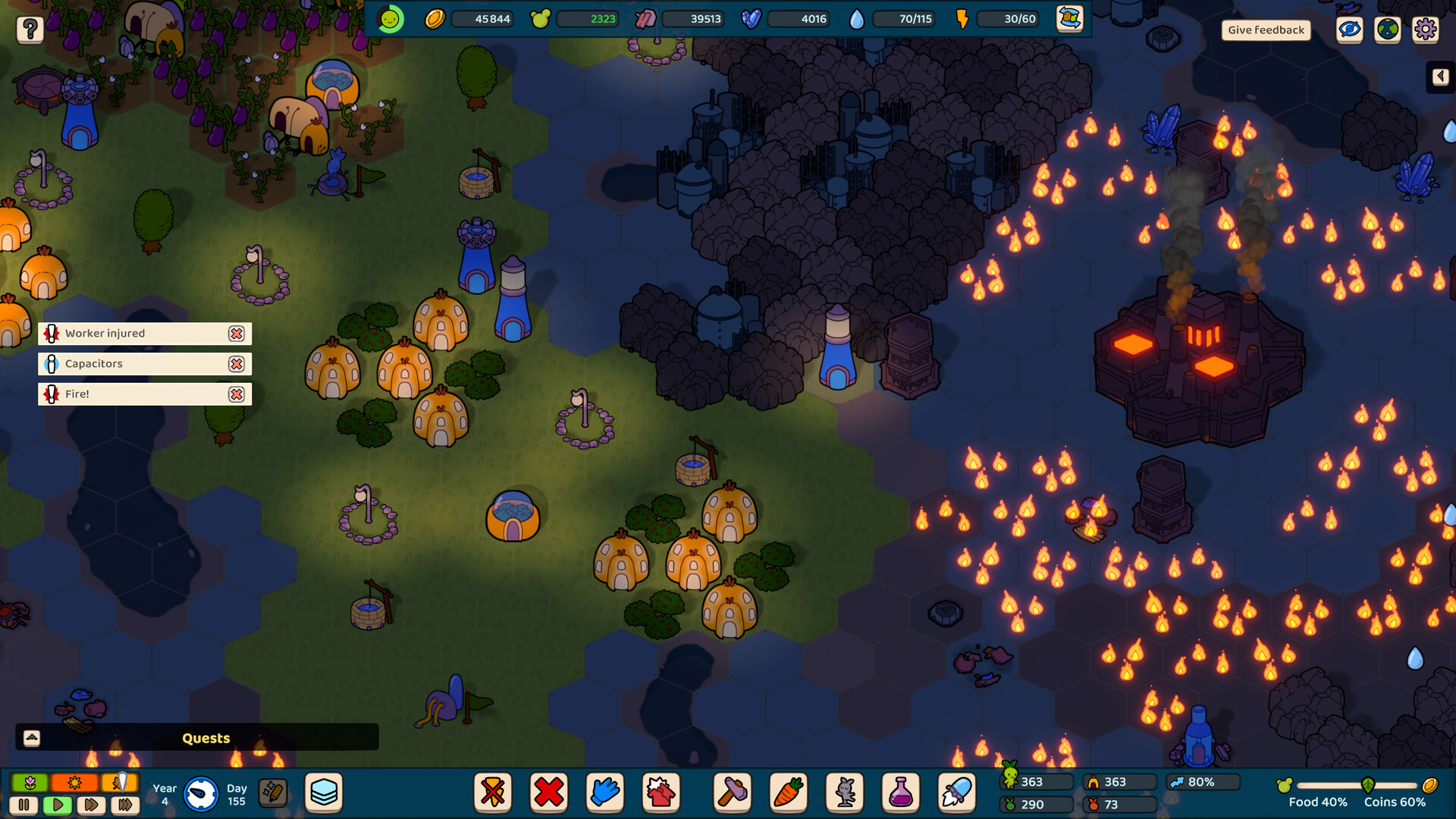Green Again is a relaxing colony simulation game. Help a tribe of little plant people reclaim their planet taken over by defective robots. Build, decorate, and expand your settlement. Grow crops for your citizens, explore the unknown, and return the land to its former green state!