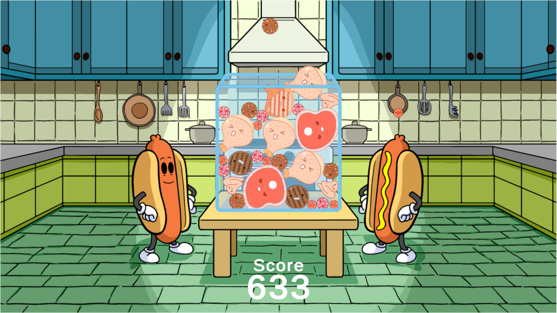 Have you ever played some game with watermelons and persimmons (whatever those are) but thought "Gross, fruits are a healthy choice for both my body and the environment"? Good, because this game is like that game, but it is full of heart-clogging proteins and greenhouse gas emissions. Join some hotdogs in the kitchen in their quest for the meats they've been missing.