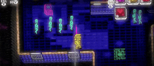 Approach a computer terminal to switch to "Neo-N" mode for 15 seconds. In this mode, the player is invulnerable: you can quickly take out monsters around you. Hidden passages in walls also become visible.