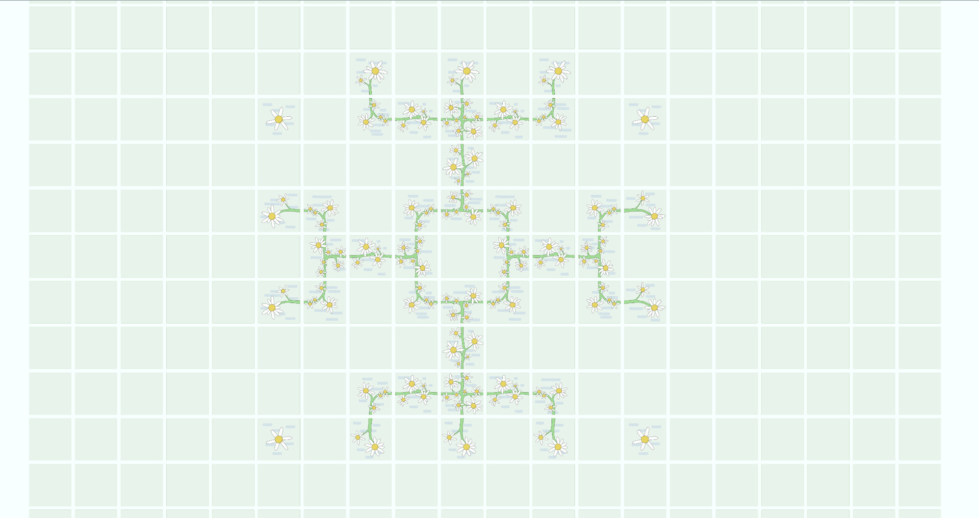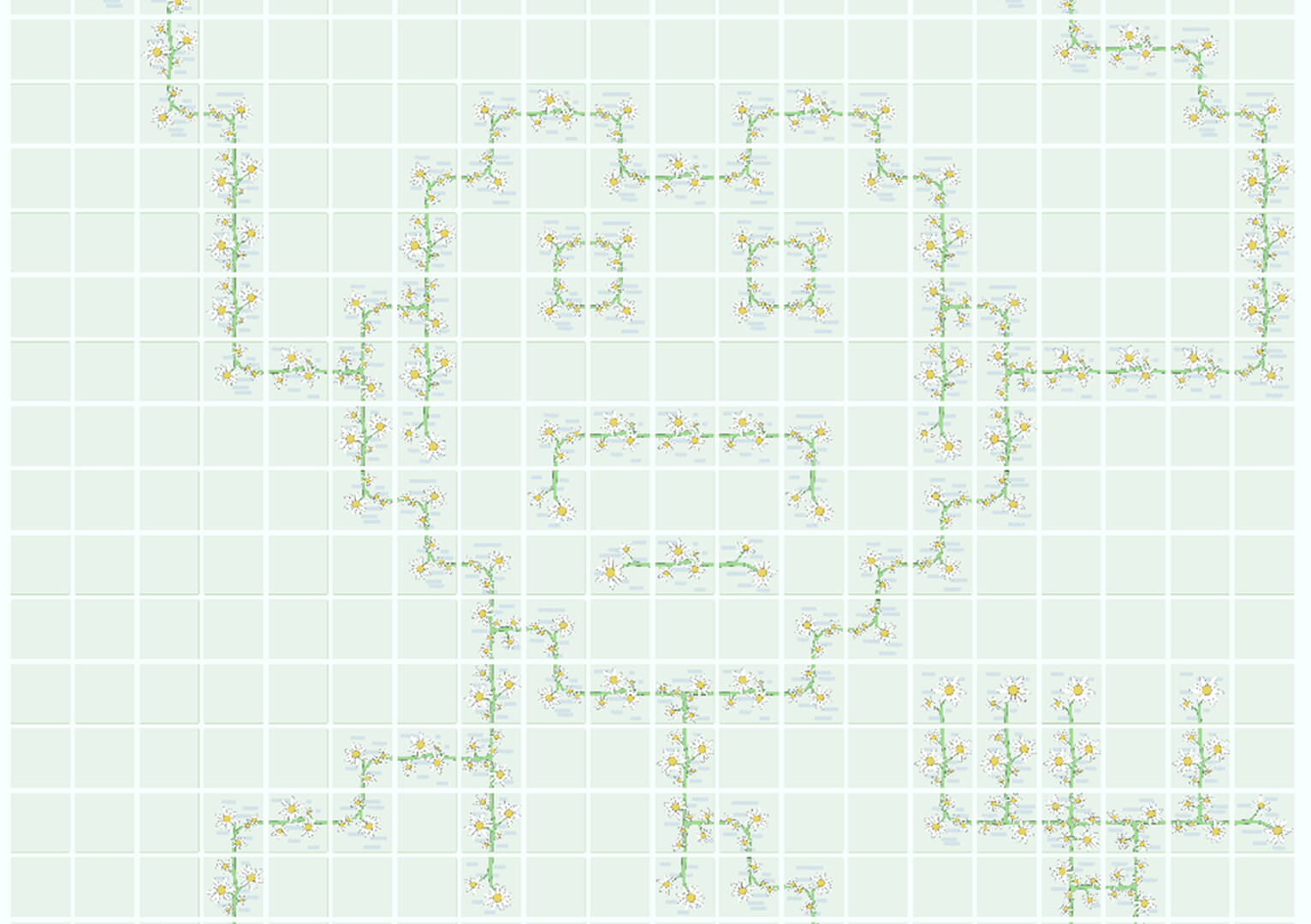 A grid space to clear your mind and create your own work. You can draw a floral path, a maze, a network of pipes, or some meaningless yet pleasing patterns—anything you like.