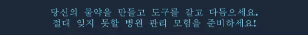 병원을 떠나 밭으로 나가 허브, 광물 및 기타 필수 자원을 수집하세요. 병원이 자동으로 보급되지 않을 겁니다!