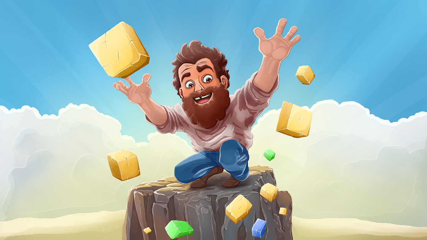 The gameplay takes place on a screen where various obstacles such as walls and platforms are located. Grandfather is in a large wooden barrel that can be controlled with the mouse. At the beginning of each level, the player is given a certain number of projectiles that can be used to break cubes. Cubes can come in different colors and have different properties, for example, some of them can be stronger and require more effort to break. The goal of the game is to complete all levels by breaking cubes and collecting coins.