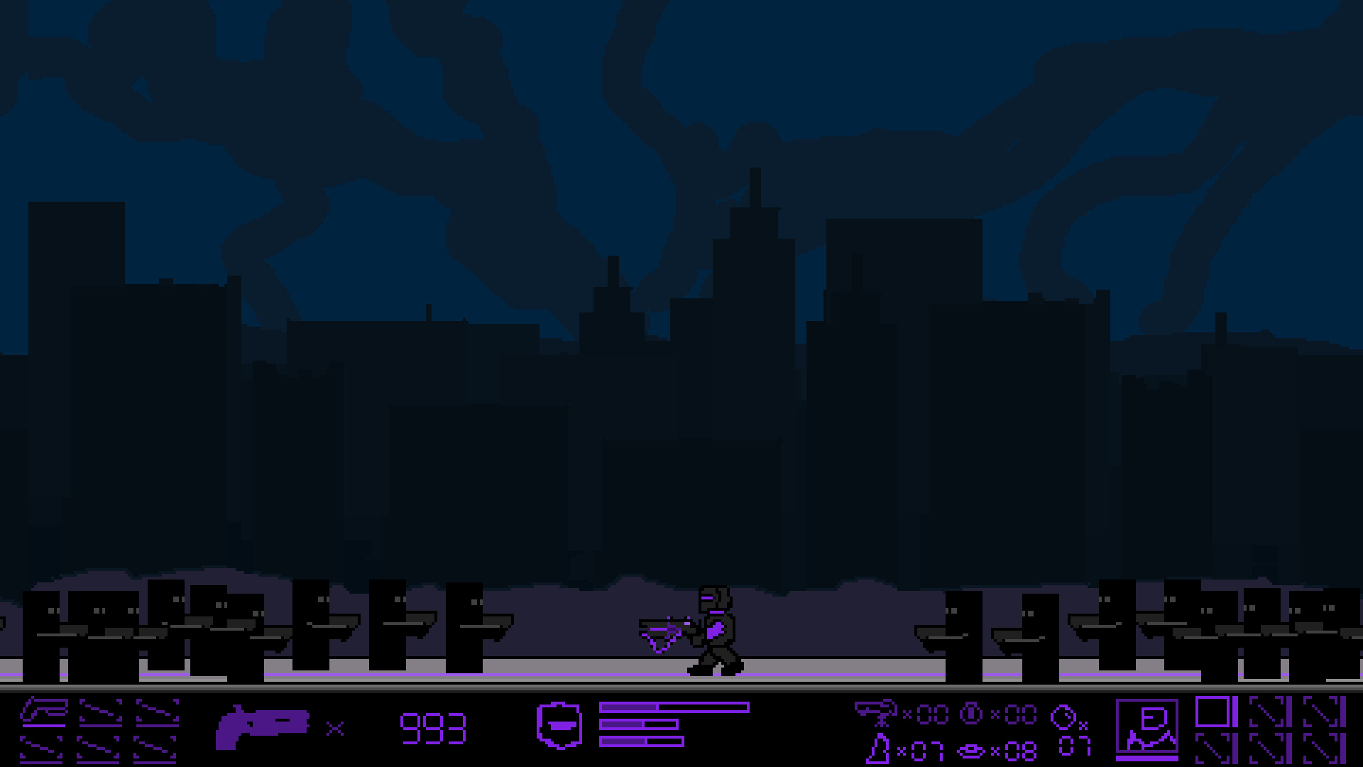 In a world overrun with shadowed zombies, take on the helm of Annihilator and purge the endless horde one block at a time in bloody, 2D combat. Secure loot to amass munitions and money. Survive waves to unlock perks and upgrades. Sell items for immediate currency or lend out supplies for consistent war dividends. Invest in combat development projects to strengthen existing equipment or acquire powerful mechanic-enhancing augments. But perhaps most importantly, gain the affinity of your personal quartermaiden to alter the game's RNG and lighten your inevitable journey to the end.