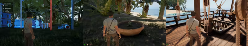 As you dominate the zones, you will be able to explore new skill areas, hunting, fishing, archery, logging, improving your boat and your sailing skills. You will improve your knowledge of electricity, animal breeding, and of course botany. Your goal here is to master the local flora and its specificities, sensitivity to the sun, temperature, consumption of water, fertilizer, to feed you, your animals or treat yourself.