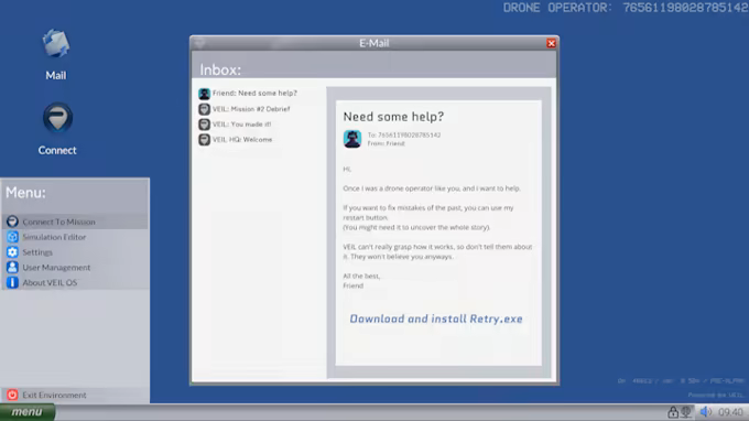 Your country is invaded. Military organization VEIL invites you to join as a tester for their new drone-based warfare communication system.