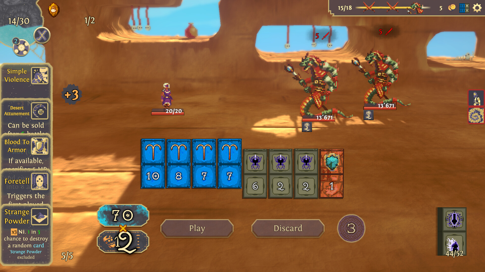 Combine tiles and run-changing cards to unleash power-packed combos and crush your enemies. Fight your way through the scorching desert of Samsara and stop the Djinn!