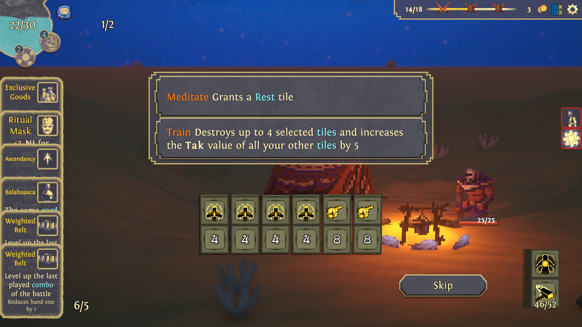 Aliosso is a turn-based roguelike all about combining tiles and cards to win battles and survive a perilous journey across the desert of Samsara.