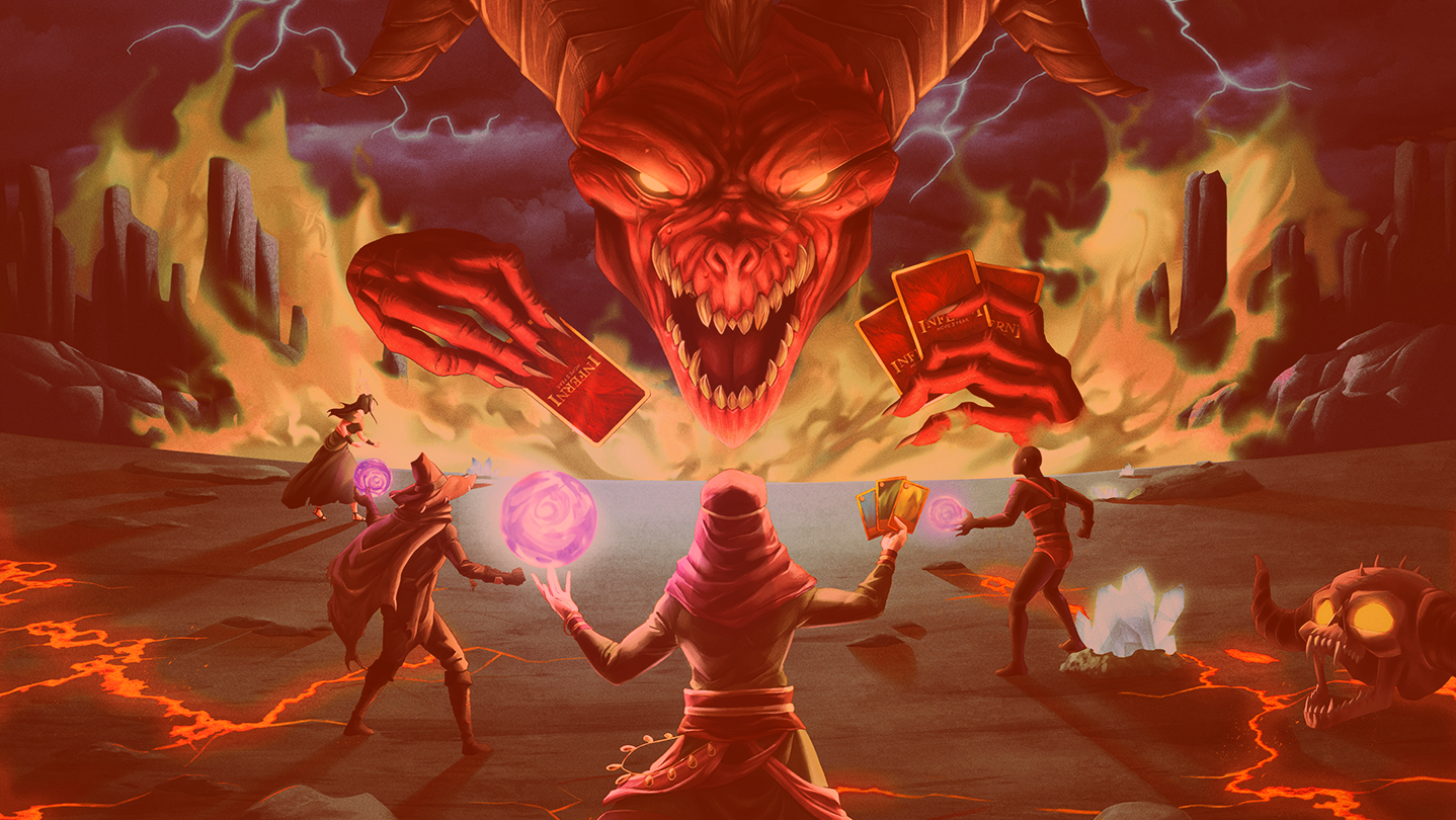 Sling cards in the magical mosh pit of Inferni! Realtime 8-player card game that is unlike anything before. Easy to pick up, but with a lifetime of strategic depth. Bring a friend, build decks and ride the leaderboard to the top. Arise as champions, o’Waywards!