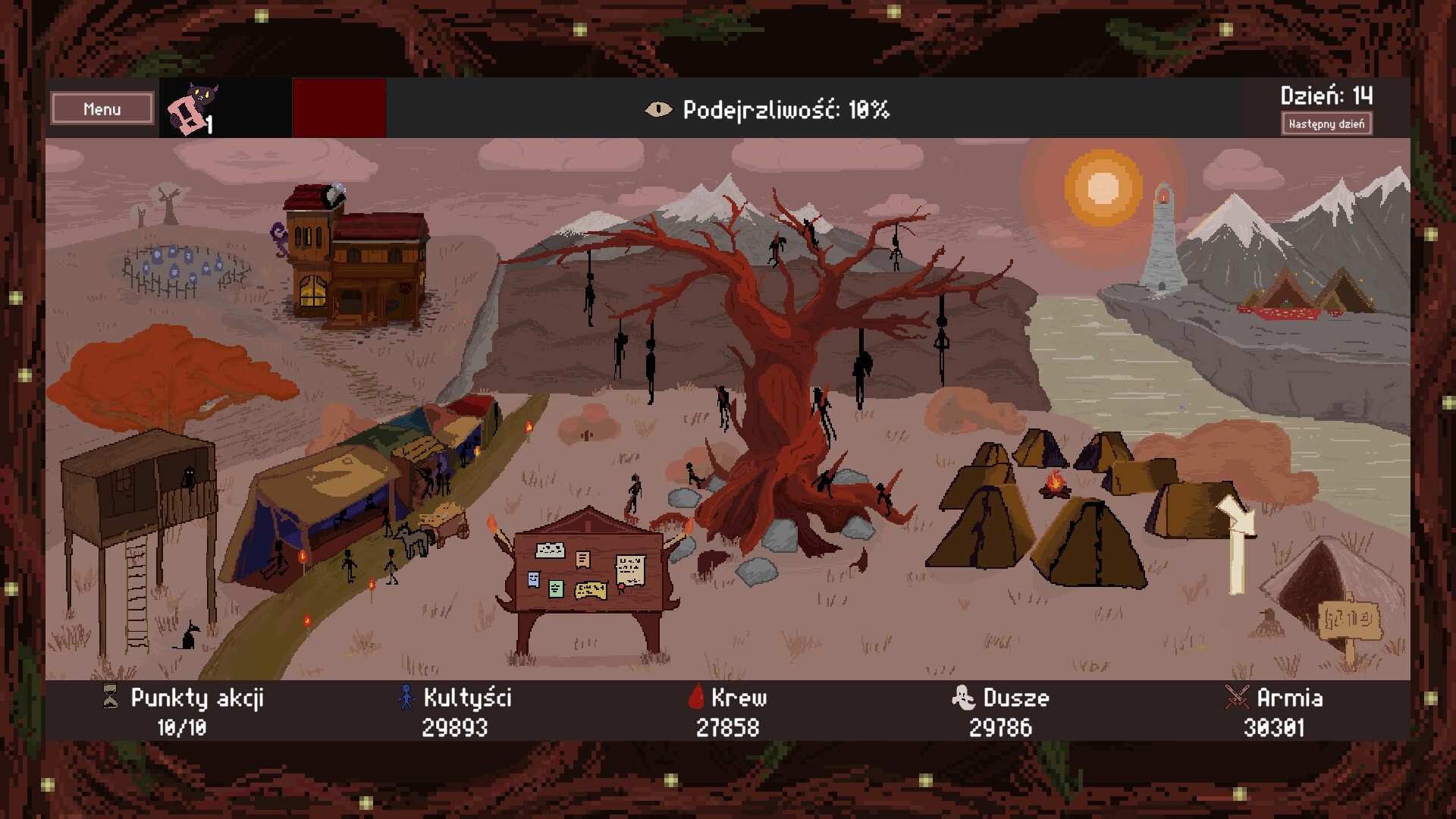 Cult of Abaruth to strategia ekonomiczna w systemie turowym, która jest łatwa do opanowania, lecz pełna wyzwań. Ten symulator zarządzania kultem pozwoli Ci, doświadczyć klimatycznej oprawy dźwiękowej i stylowej grafiki pixel art. Pamiętaj o planowaniu swoich poczynań, gra jest okrutna dla tych, którzy są zbyt lekkomyślni.