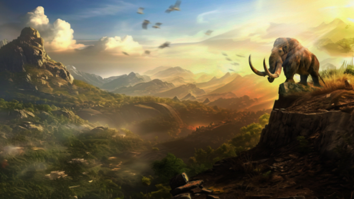 Exploration of diverse terrains, including forests, mountains, and lakes, creating a rich and interactive prehistoric world.