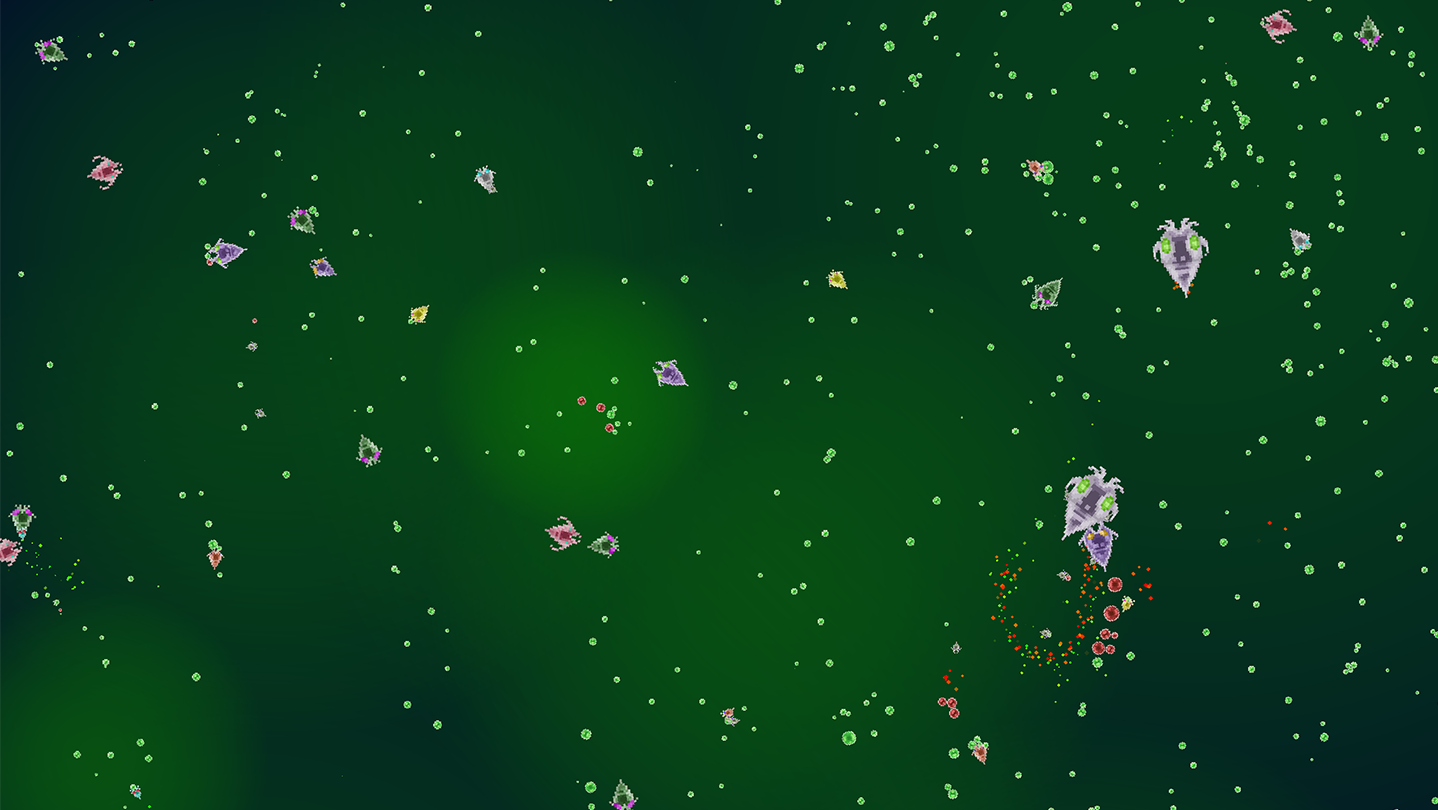 Watch as your world explodes with diverse life! Through the pressures of natural selection, bibites evolve to fill various environmental roles including predation and parasitism. With their Neural Network brains and pheromone system they can even learn to communicate and work together.