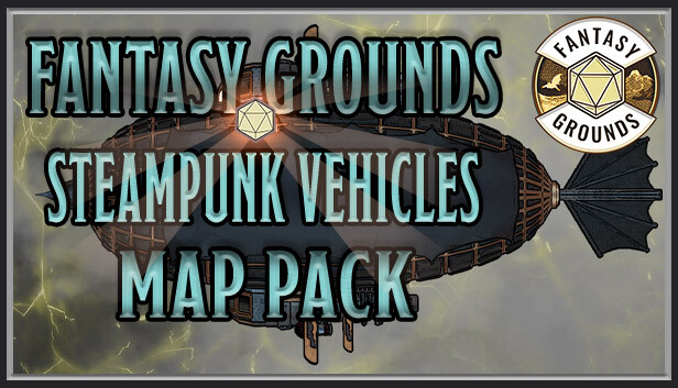 The Steampunk Vehicles Maps Pack features images and art produced by our in-house artist, Joshua Watmough. They have been organized and optimized for use with Fantasy Grounds Unity and the image tools.