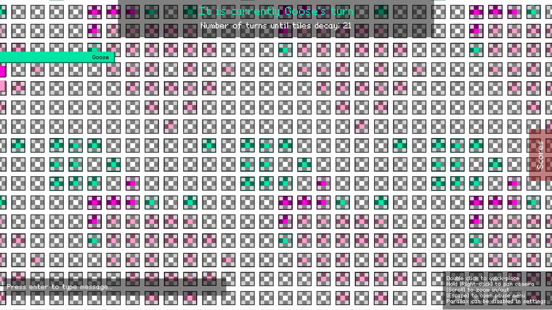 Each player takes turns filling in a cell on a tile with their colour. Once a tile has all of its cells full, it explodes, or 'splurges', spreading your colour into any neighbouring tiles. This can claim unclaimed tiles, or ones already claimed by your friends, and can create long splurge chains! Last splurger remaining wins.
