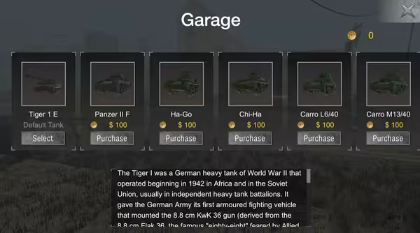 During the last phase of World War 2, a German tank crew driving the mighty Tiger fought their way back to the ruined Berlin desperately trying to save the Third Reich. On the way, they need to overcome the challenge of endless allies' tanks and defeat the ultimate evil tank that is "Big Mac" KV-2.