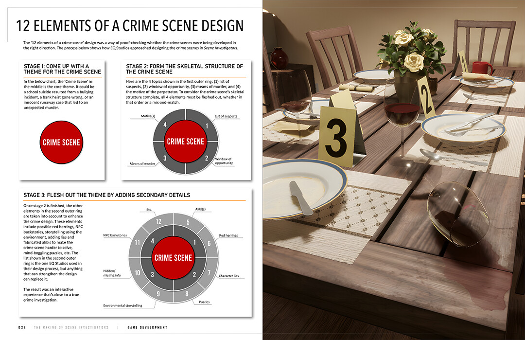 The Making of Scene Investigators is a 160-page digital book encompassing a wide range of game development content. It includes the history of EQ Studios, ideation phase, different stages of game production, post-game development, music making, marketing and more. The book is written for fans and indie developers in mind, and is an ideal companion for the Scene Investigators game.