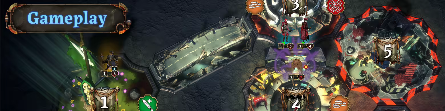 The goal of the game is to claim as many Victory Points as you can whilst anticipating your opponents’ strategy by deploying your Units and Actions into the various Zones of the battlefield.