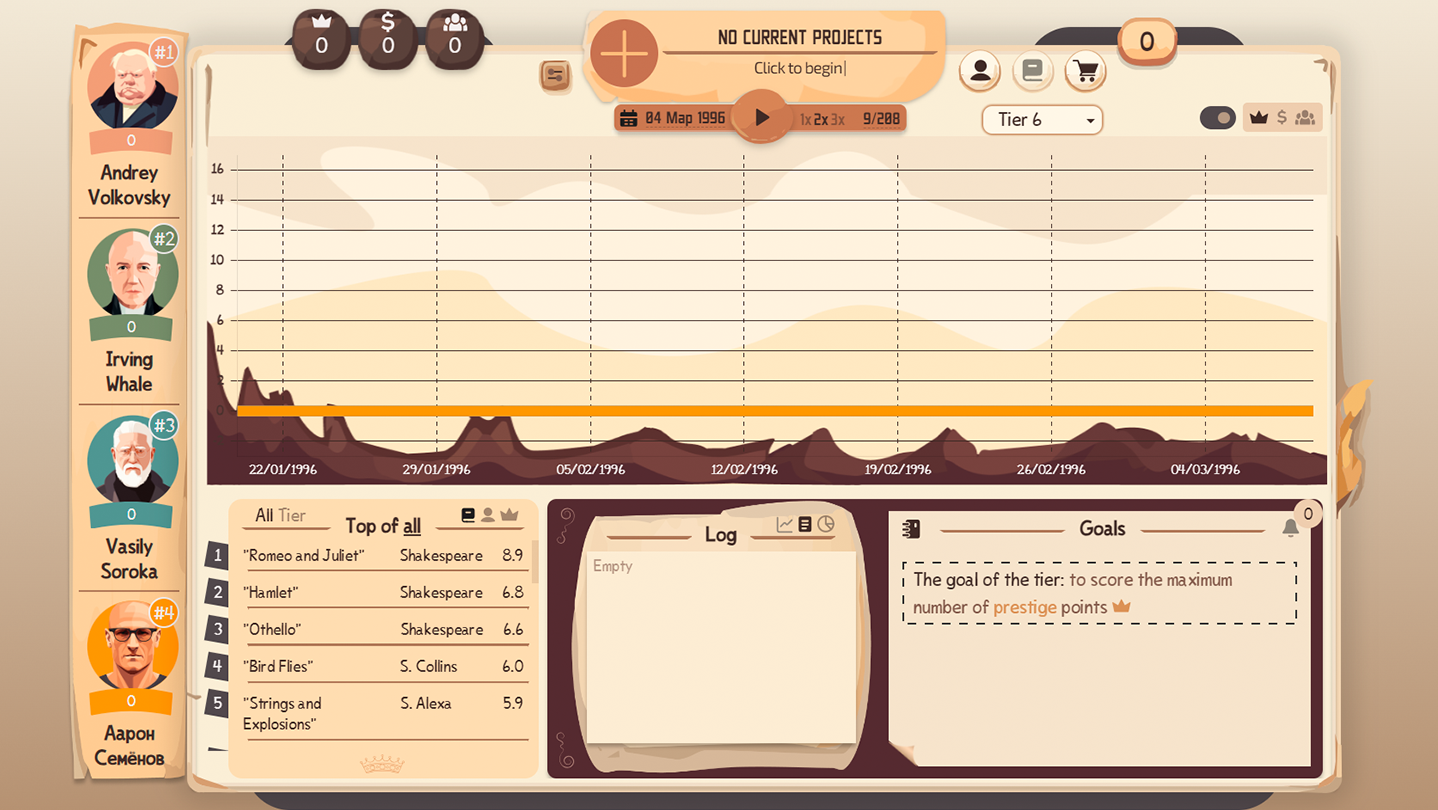 Writer's Rush is a writer life simulator where you compete with other authors for the title of the world's greatest writer. Craft articles, books, scripts, and fanfics. Complete publisher contracts, unlock new skills, and level up your literary talents.