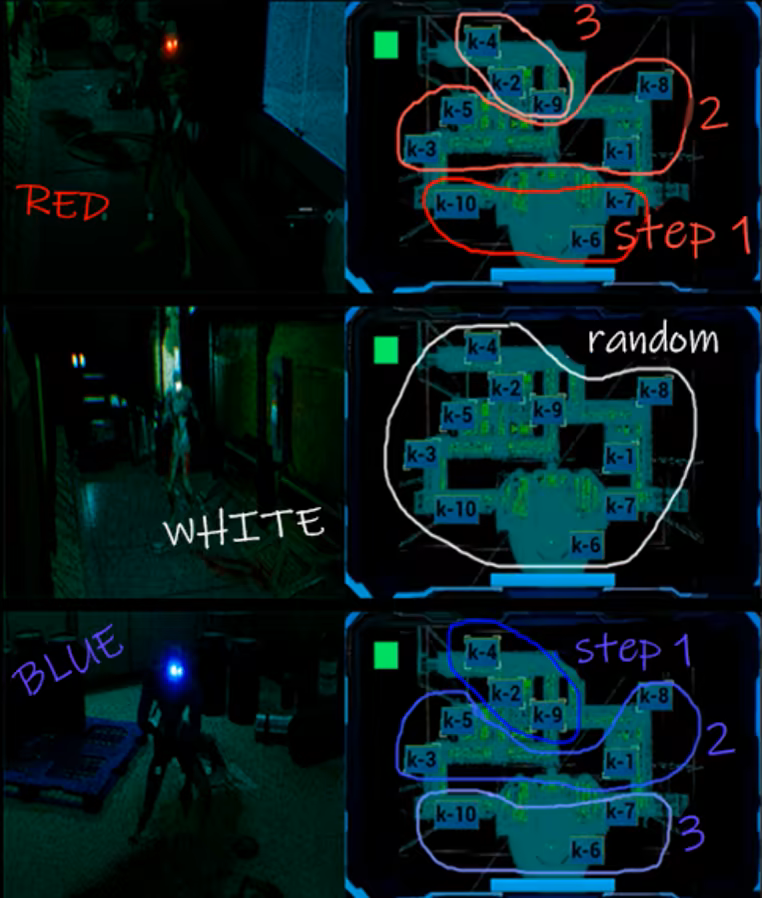 The purpose of the game is to transfer the energy stored in the energy panels during the day to the teleport every night by means of a robot. Meanwhile, you need to protect yourself from the creatures approaching you.When you see a creature in the corridors, send a shockwave to stop its progress. Each creature has a different strategy and trait. You should check the cameras accordingly. Also to fix randomly broken cameras you need to go to camera location and fix it. When the energy in the energy panel is fully transferred, the process is completed and the level ends. As the level progresses, new creatures appear. It consists of 7 levels in total.