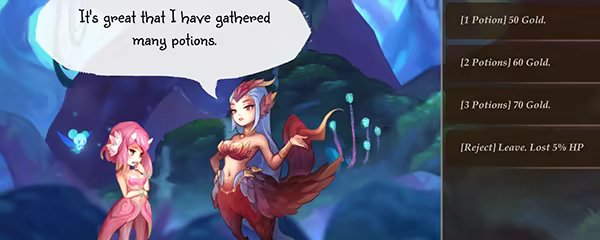 Meet the Shopkeeper to buy new cards, equipment, and potions, or sell items to earn currency.