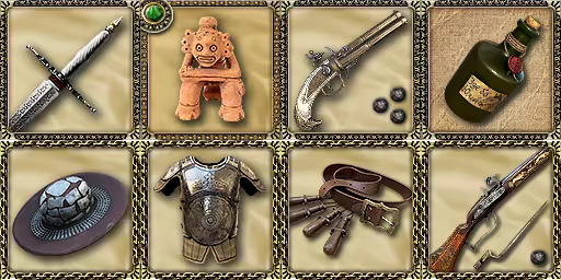 • The dagger, amulet, and pistol can be found together in a single treasure hoard.