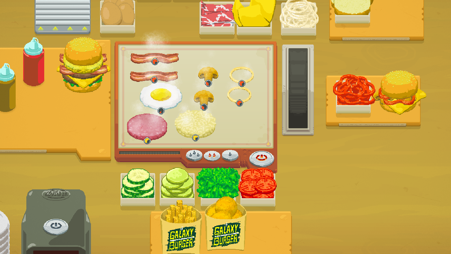 Čekají na vás zákazníci všeho druhu: mimozemšťané, mluvící kočky a další stvoření z celé galaxie! Naslouchejte jejich přáním a připravte jim co nejrychleji burger přesně na míru.