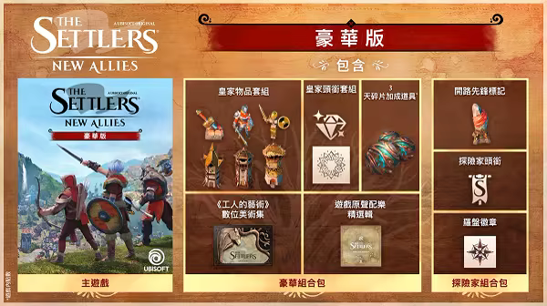 《工人物語:新同盟》豪華版內含遊戲本體、豪華組合包與探險家組合包。