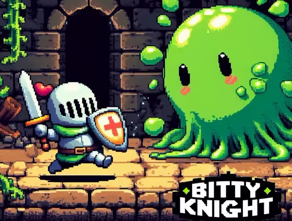 Bitty Knight is a fast-paced, challenging 2D top-down mini-roguelike with random levels and 30+ powerups. No two plays are ever the same and it is completely free-to-play. The game centers on a tiny knight stuck in a small dungeon and you have to reach the final boss to escape.