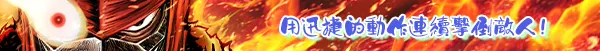 忍者身法極快,因此攻擊也快到電光石火。使出眼花繚亂的高速忍者攻擊,不斷掃除來襲的黑道和忍者!勝利的關鍵就是飛快的衝刺攻擊「忍者衝刺」,以及以威力恐怖著稱的「必殺·技」。