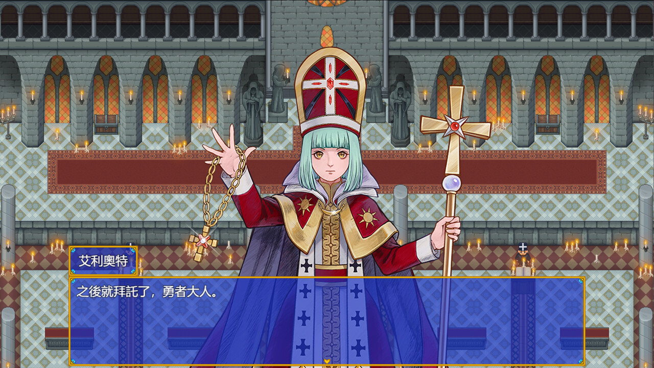 這是一款2D像素角色扮演遊戲,玩家將扮演天選勇者,與七個不同職業的夥伴一起冒險旅行,並操作各自的特色技能打敗魔王。