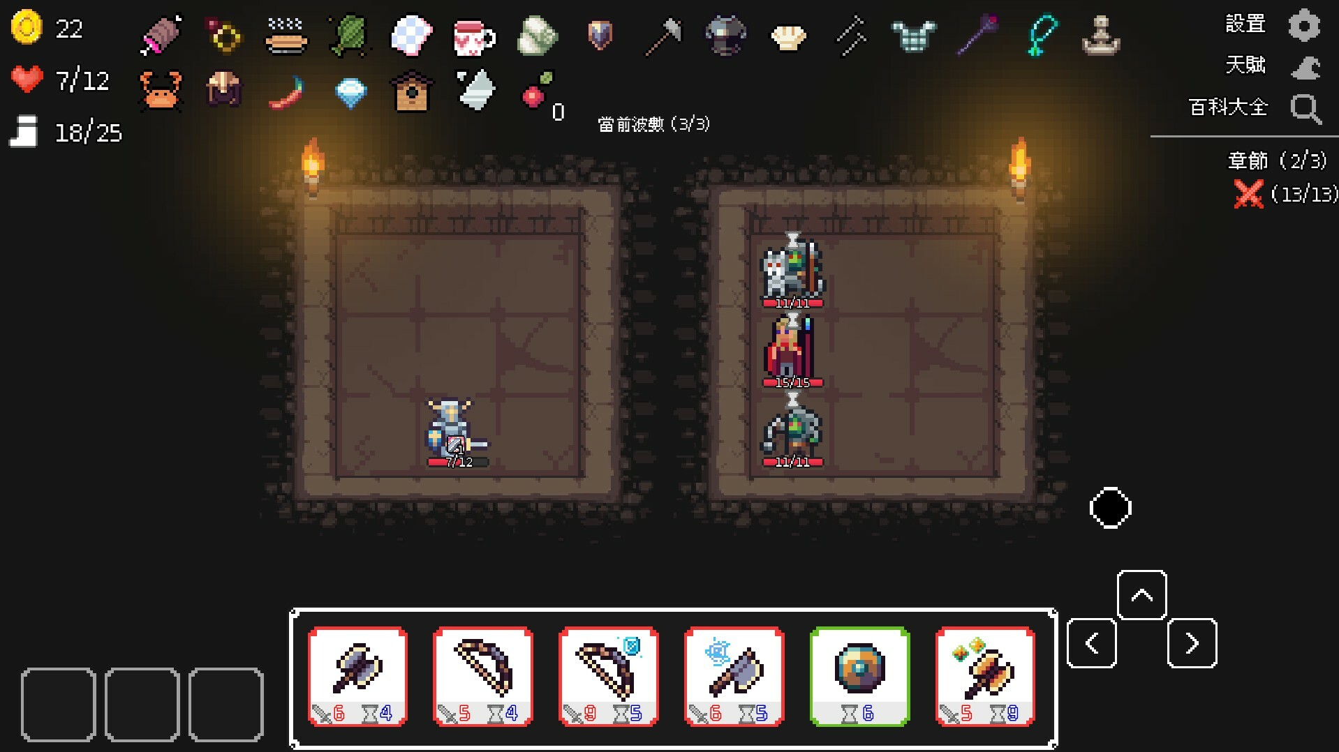 上下左右移動走位,使用合適的武器攻擊對應攻擊範圍的敵人。