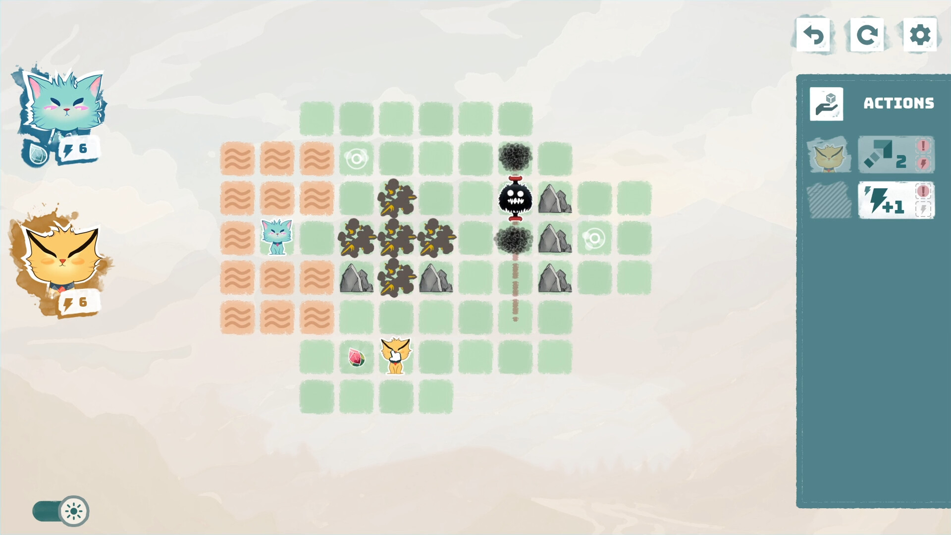 Adorable cats work together to solve puzzles in Kitiplant. Guide them through challenging grid-based levels, where they must share resources and carefully manage their energy to restore life to once-dormant forests.