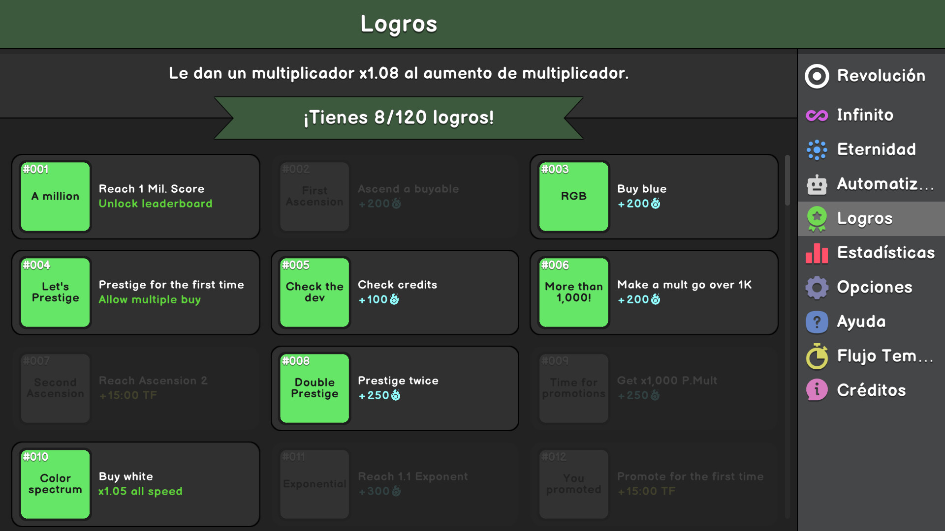 En cierto punto, puedes alcanzar el prestigio. Obtendrás otro multiplicador y aumentarás tu exponente.