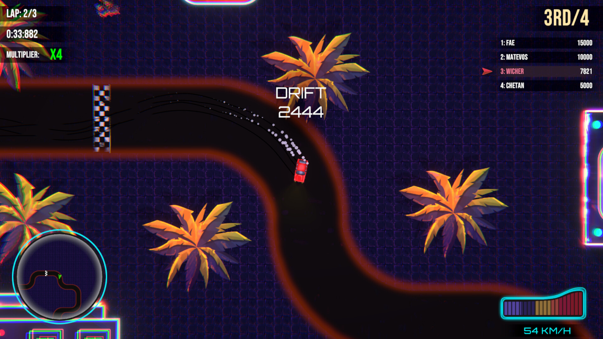 Speed through a neon city in this 2D retro racing game. Outsmart cops and rivals with skillful maneuvers. Immerse yourself in illegal racing, fueled by synthwave beats, and dominate as the underworld's top racer!
