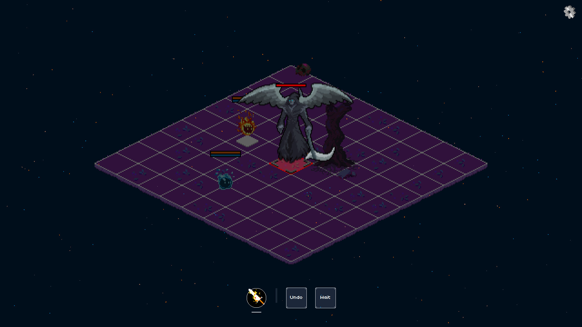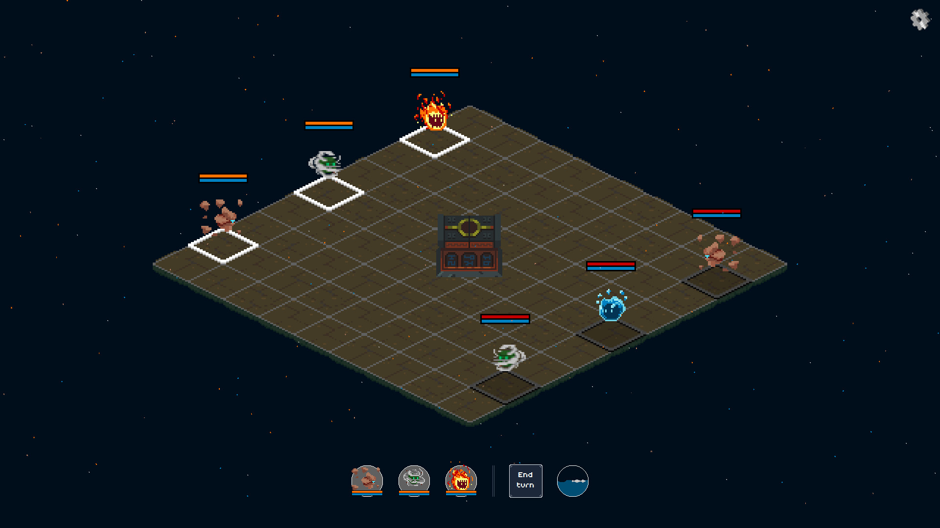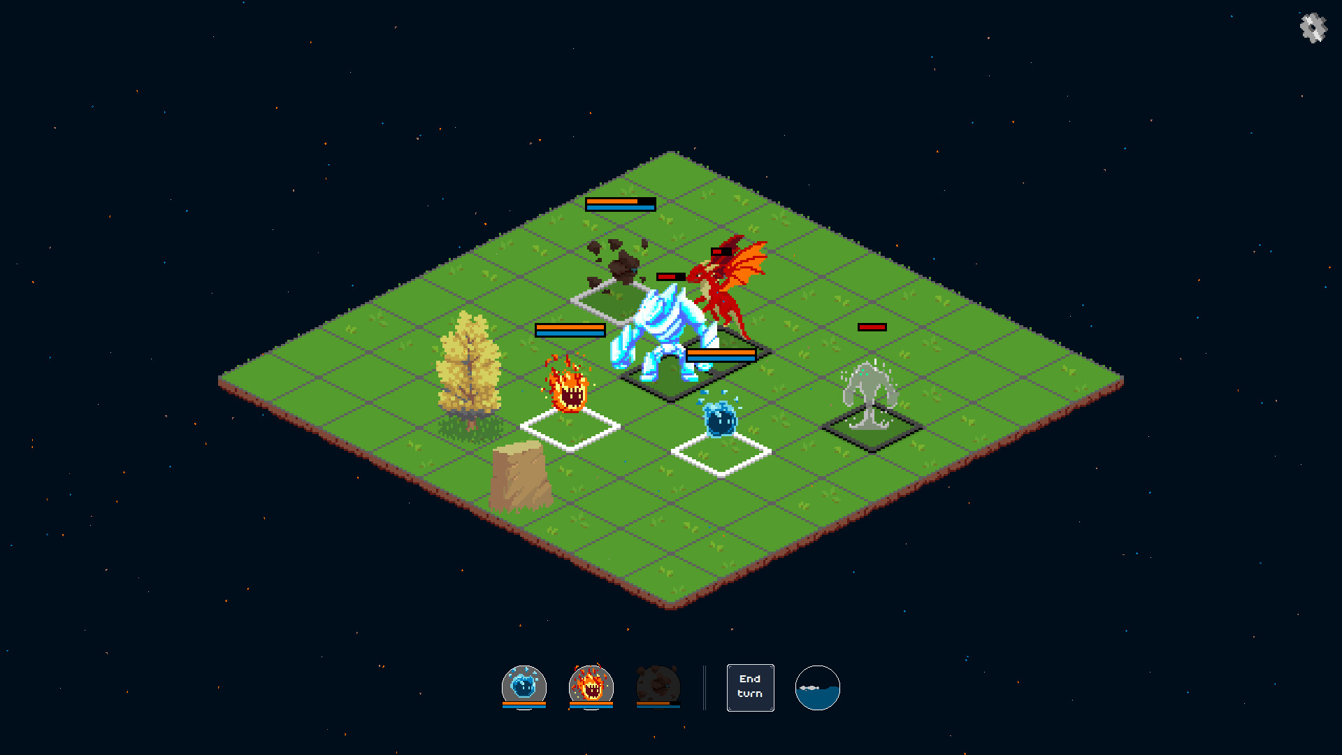 Wisps of the Elements is a grid-based rogue-lite. Each element has a special effect: Fire and Stone aim at controlling the board, while Air and Water get bonuses and penalties depending on the tide cycle.