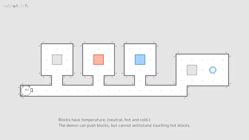 "Thermodynamic" puzzle where Maxwell's demon does work of block-pushing. Deal those hot blocks with cold blocks so that the demon doesn't get burnt.