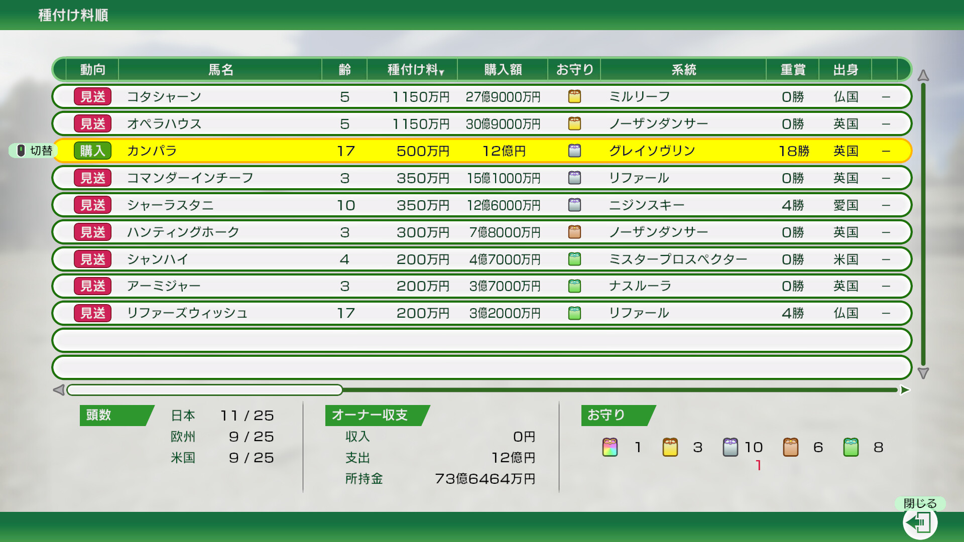 ・牧場施設「種牡馬繋養施設」の拡張の効果とは別に、繋養できる種牡馬の数を増やす効果を得られます