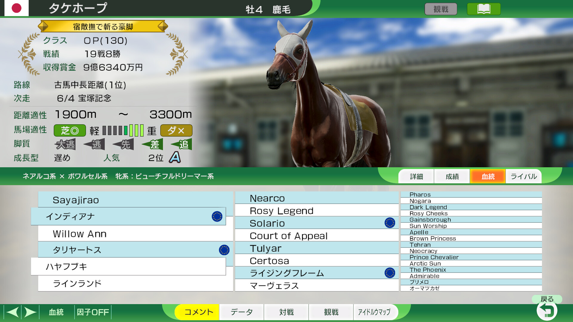 ①1973年6月1週に、以下の4頭の現役競走馬を無料でお守りを消費することなく自分の所有競走馬として譲ってもらえます
