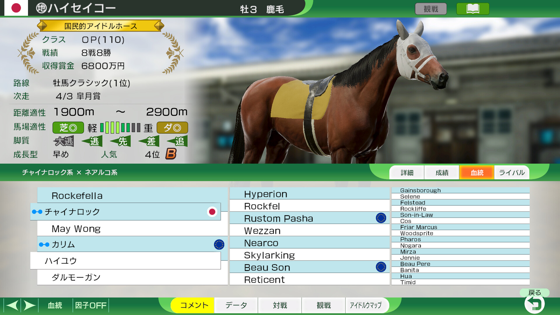・1973年6月1週にのみ、名馬を入手できます。その際に、名馬をすべてを譲ってもらうことも、好きな馬だけ選んで譲ってもらうことも可能です