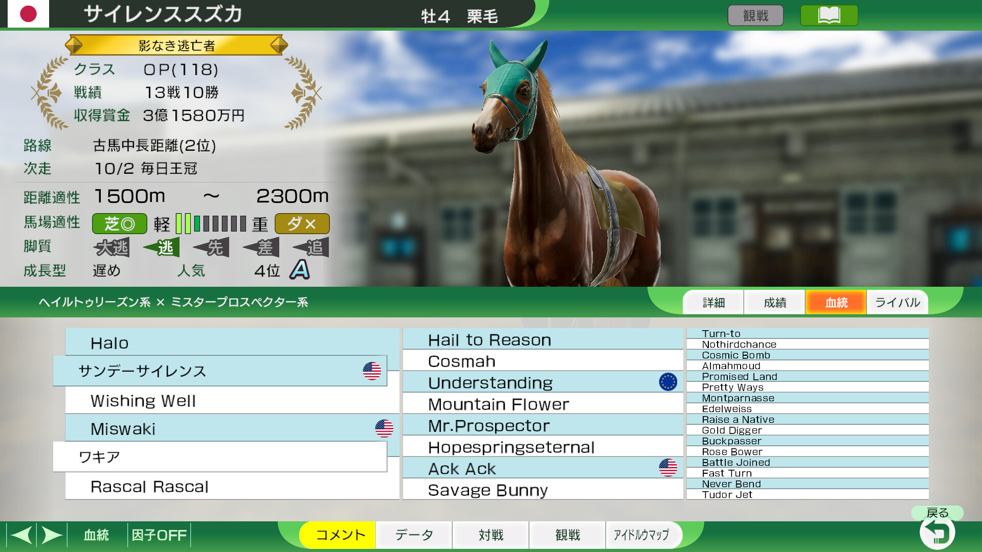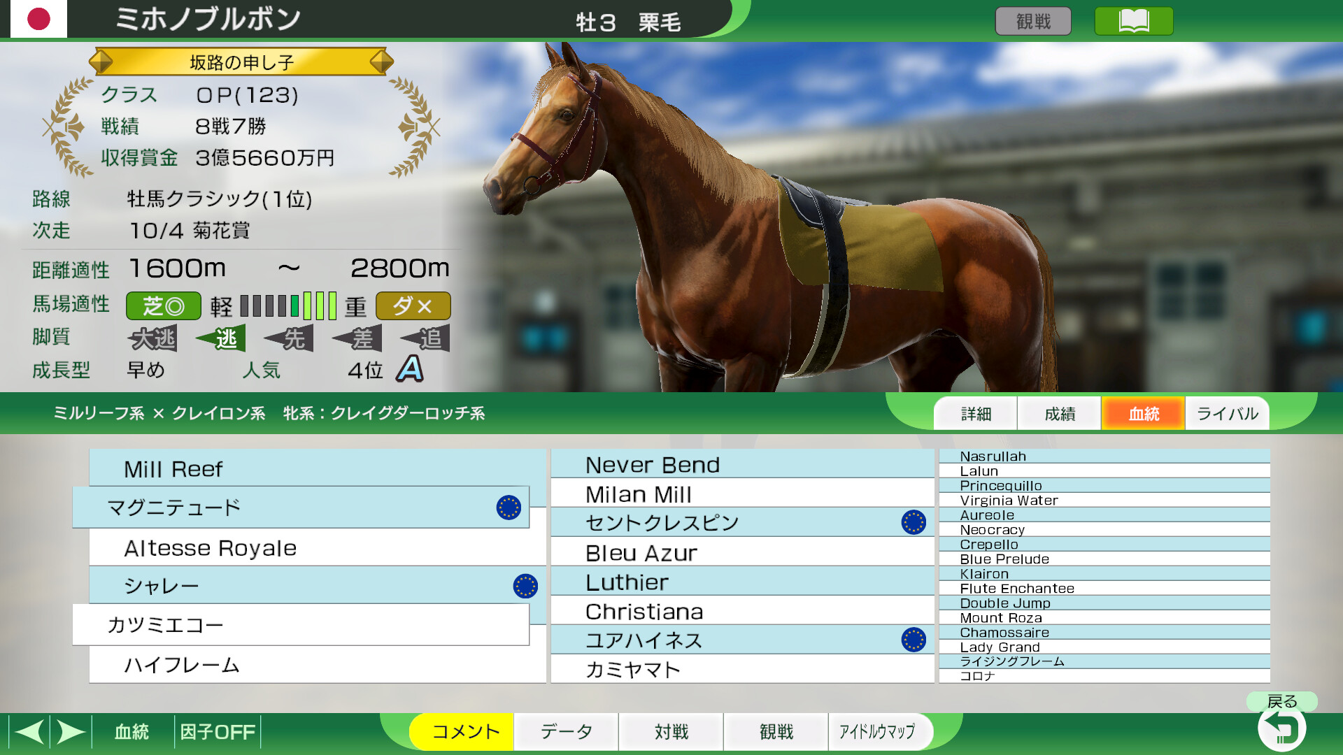 ・名馬の生年は「システム設定①」で「史実馬の誕生年」を「史実」にしてゲームを始めたときのものです